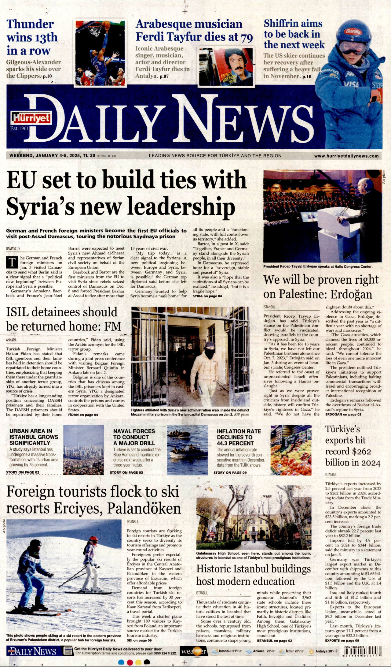 HÜRRİYET DAİLY NEWS Gazetesi 04 Ocak 2025, Cumartesi Günü Manşeti