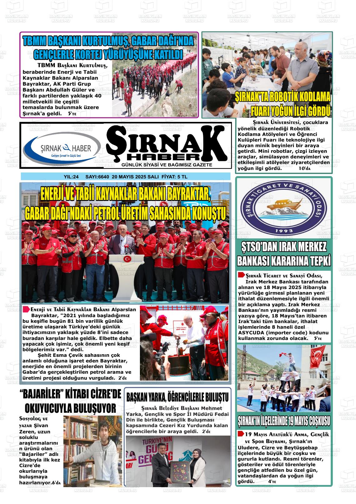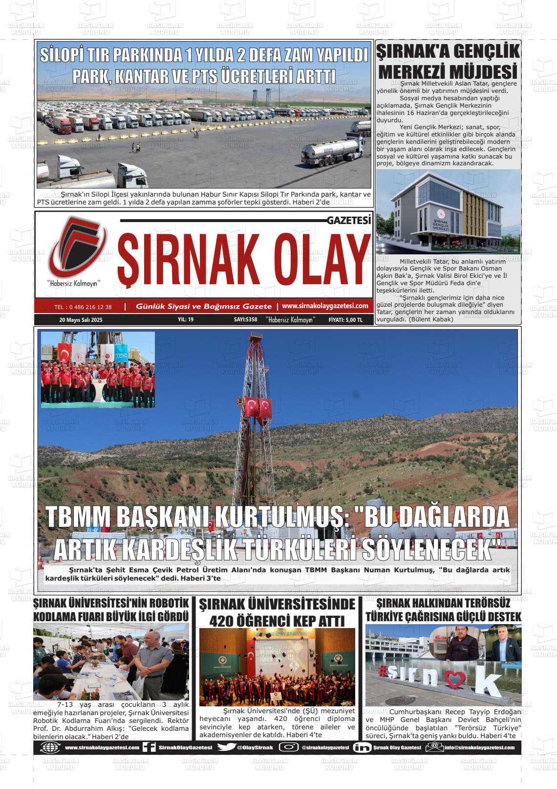 Şırnak Yerel Gazeteleri 01 Şubat 2026, Pazar Günü Manşeti