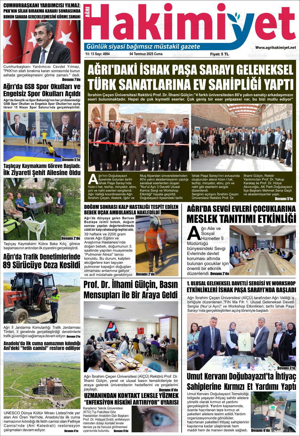 Ağrı Yerel Gazeteleri 01 Şubat 2026, Pazar Günü Manşeti