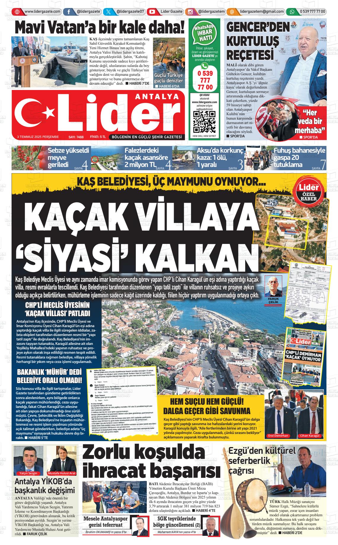 Antalya Yerel Gazeteleri 21 Mart 2026, Cumartesi Günü Manşeti