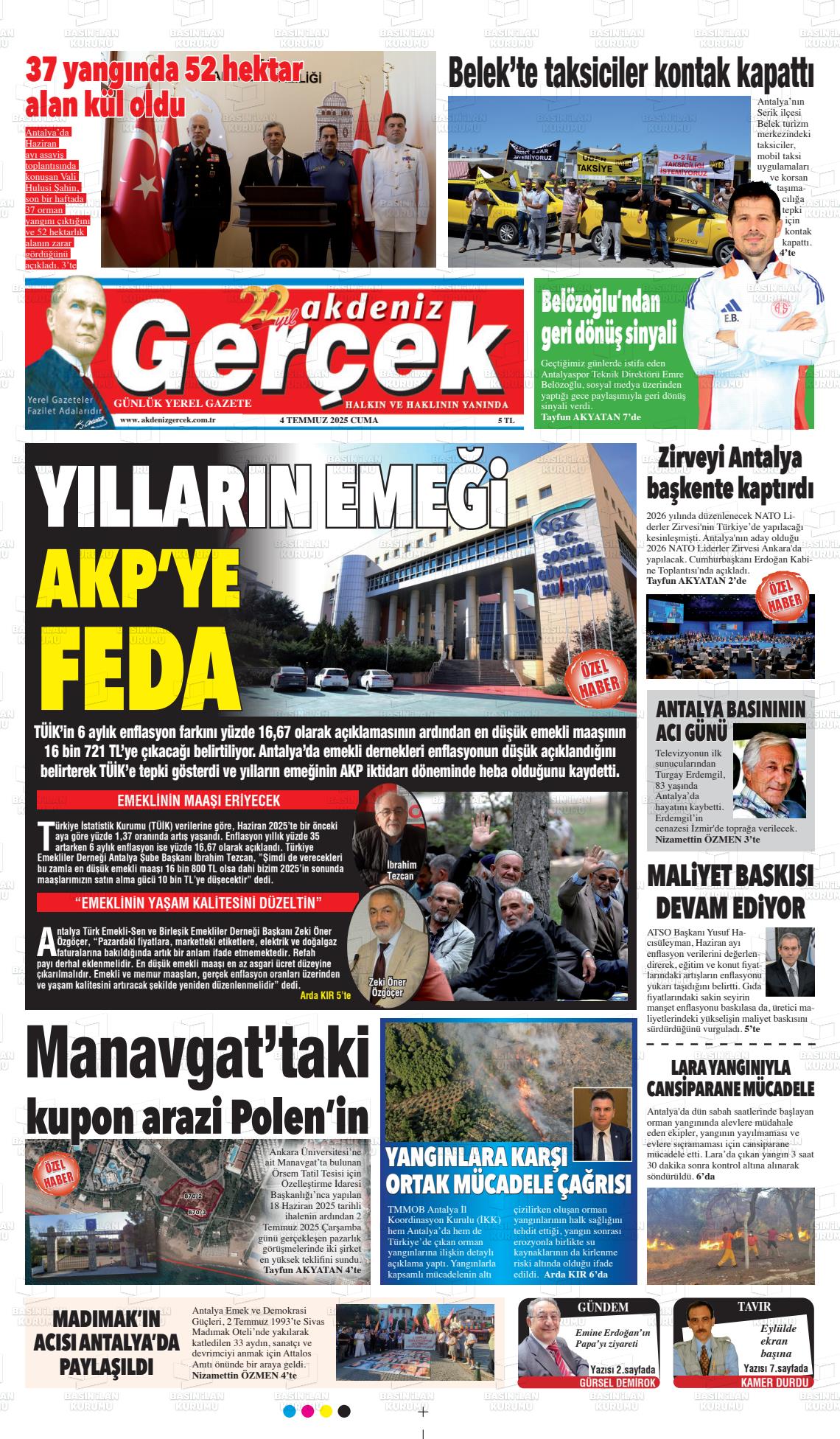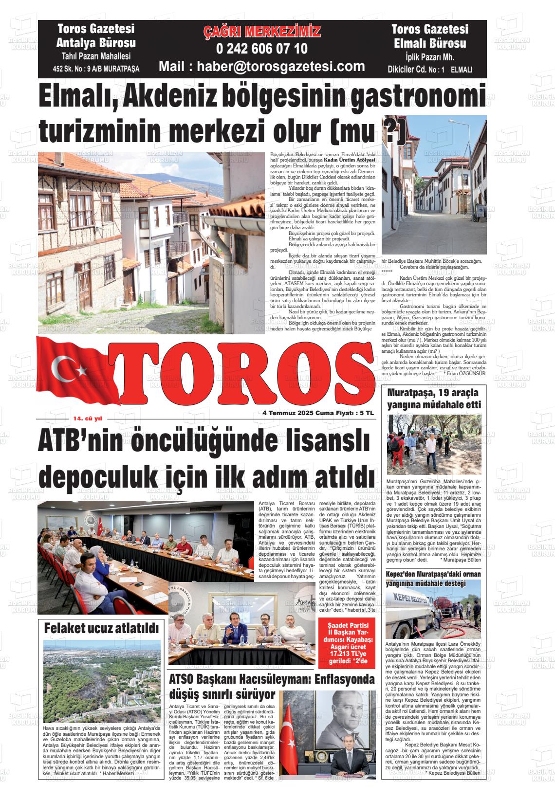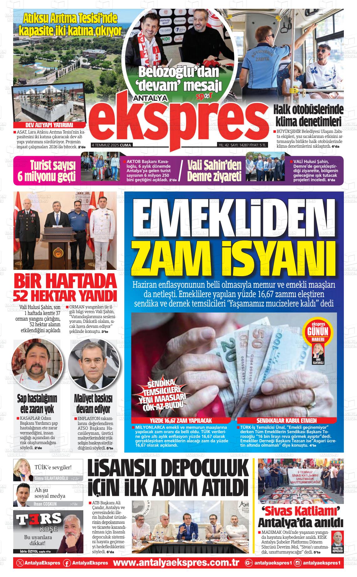 Antalya Yerel Gazeteleri 01 Şubat 2026, Pazar Günü Manşeti