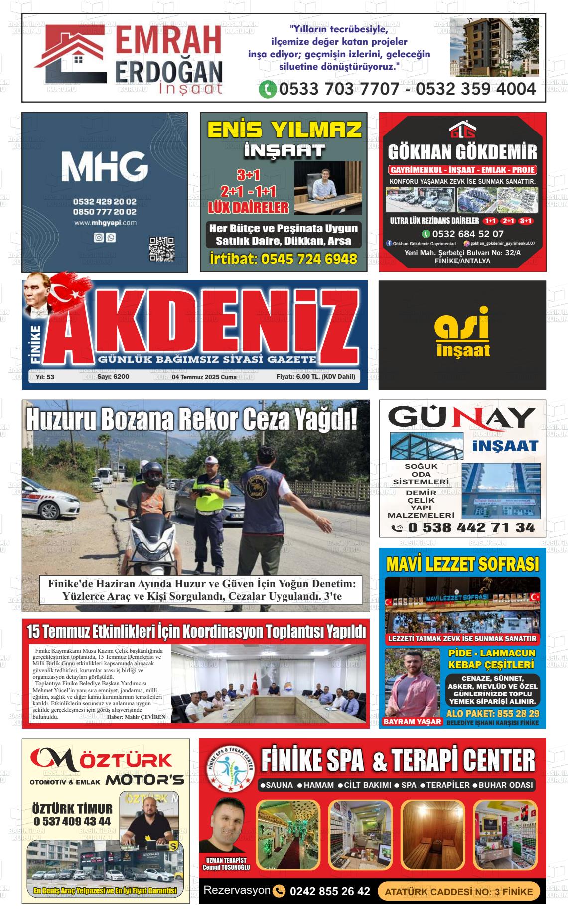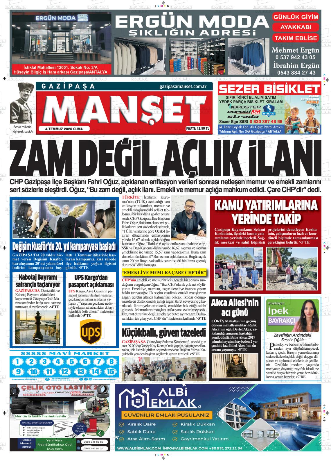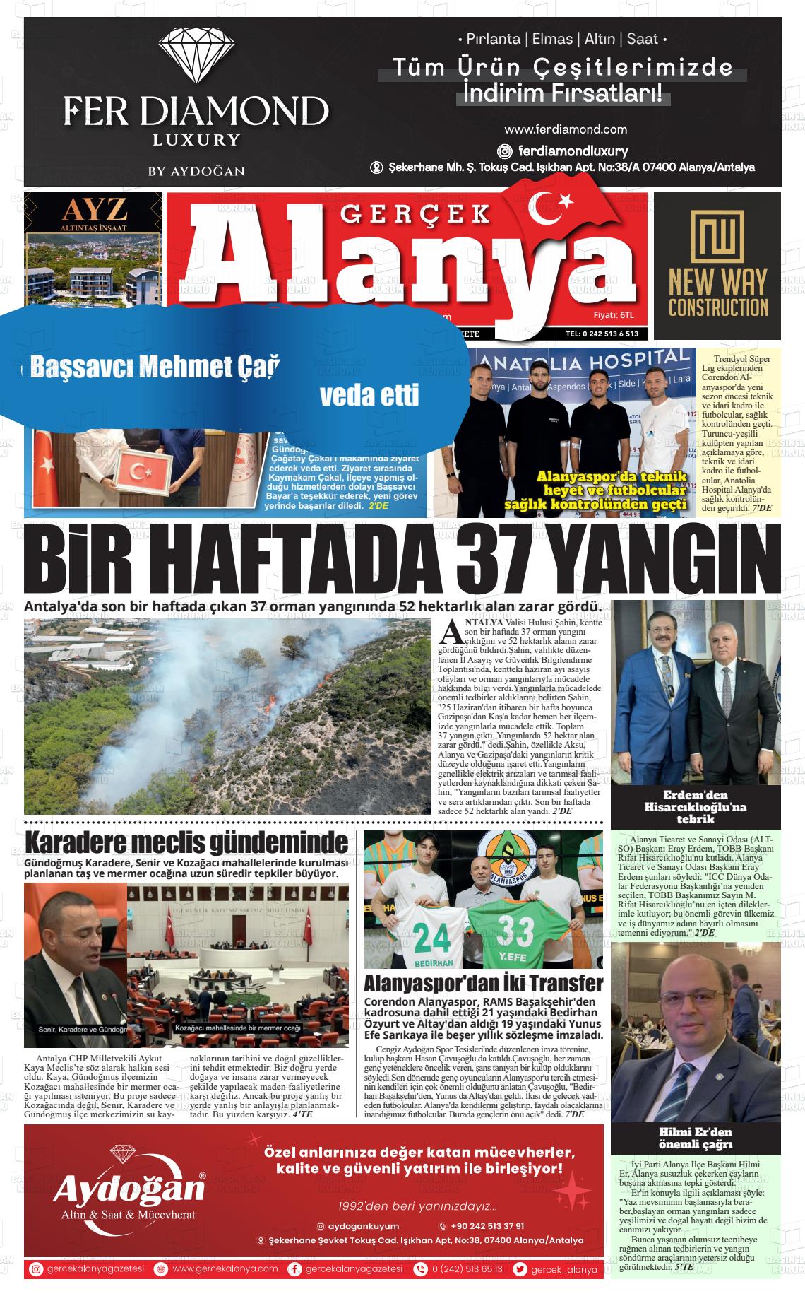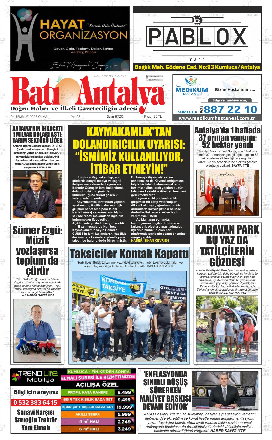 Antalya Yerel Gazeteleri 01 Şubat 2026, Pazar Günü Manşeti