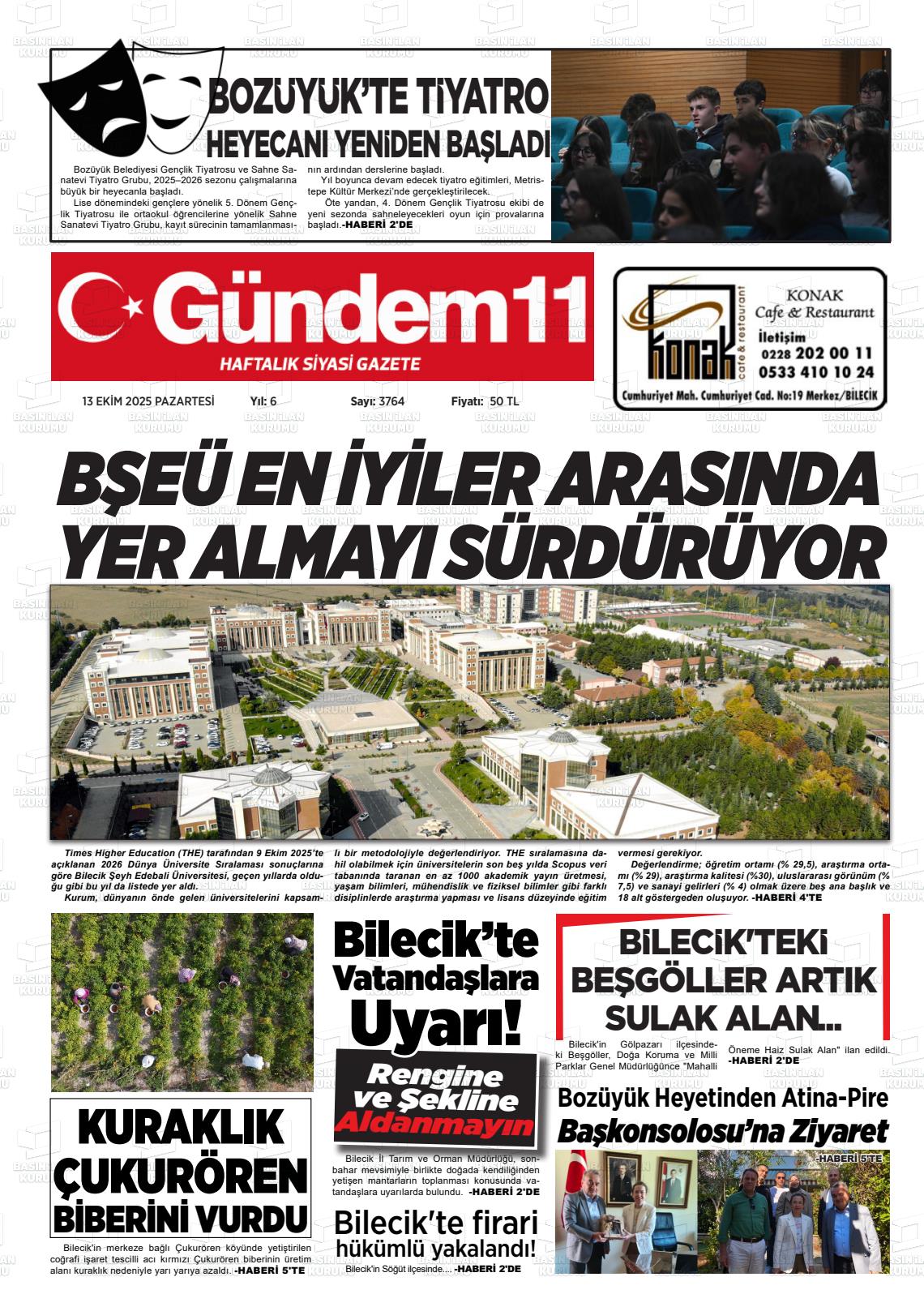Bİlecİk Yerel Gazeteleri 01 Şubat 2026, Pazar Günü Manşeti