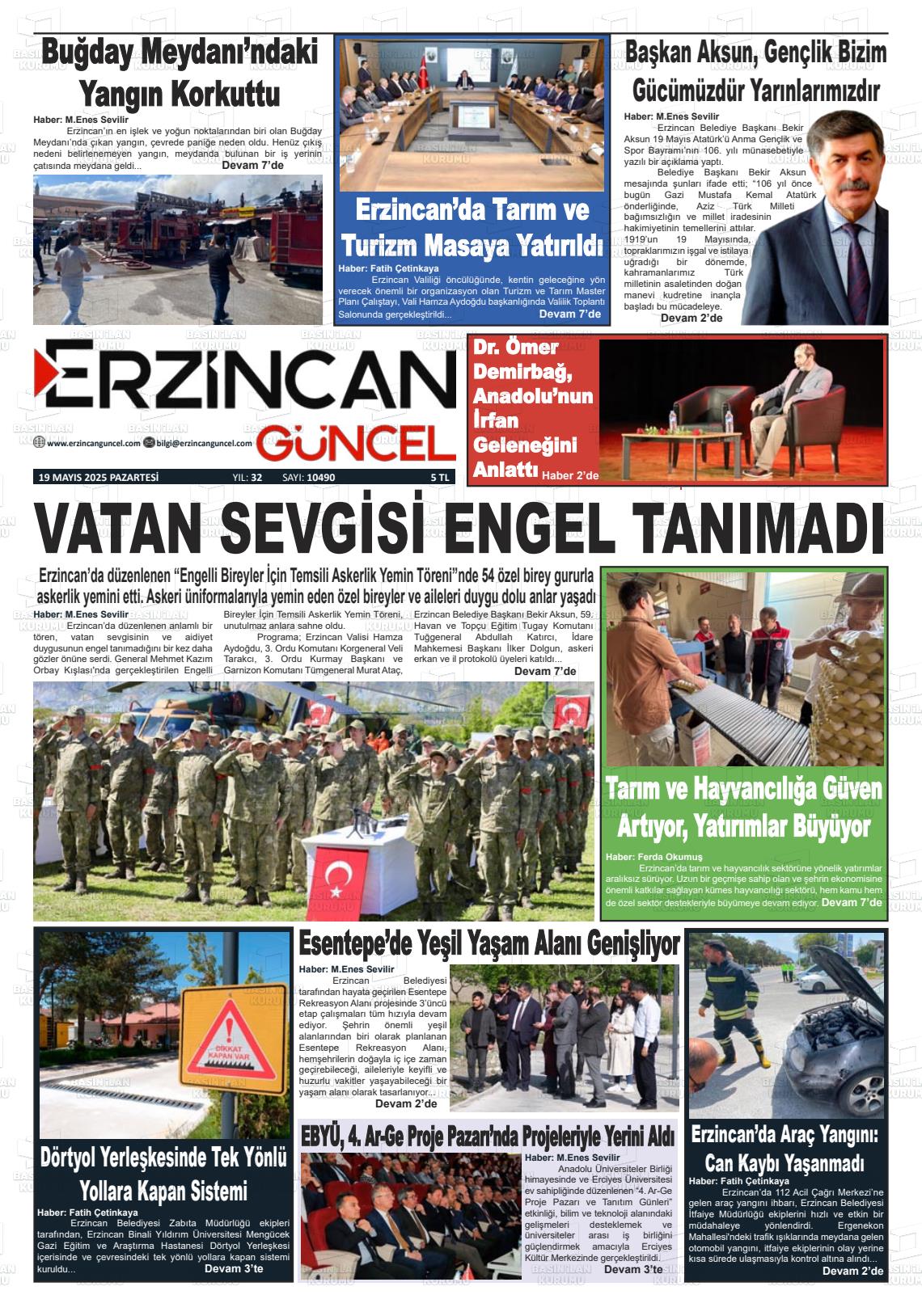 Erzİncan Yerel Gazeteleri 01 Şubat 2026, Pazar Günü Manşeti
