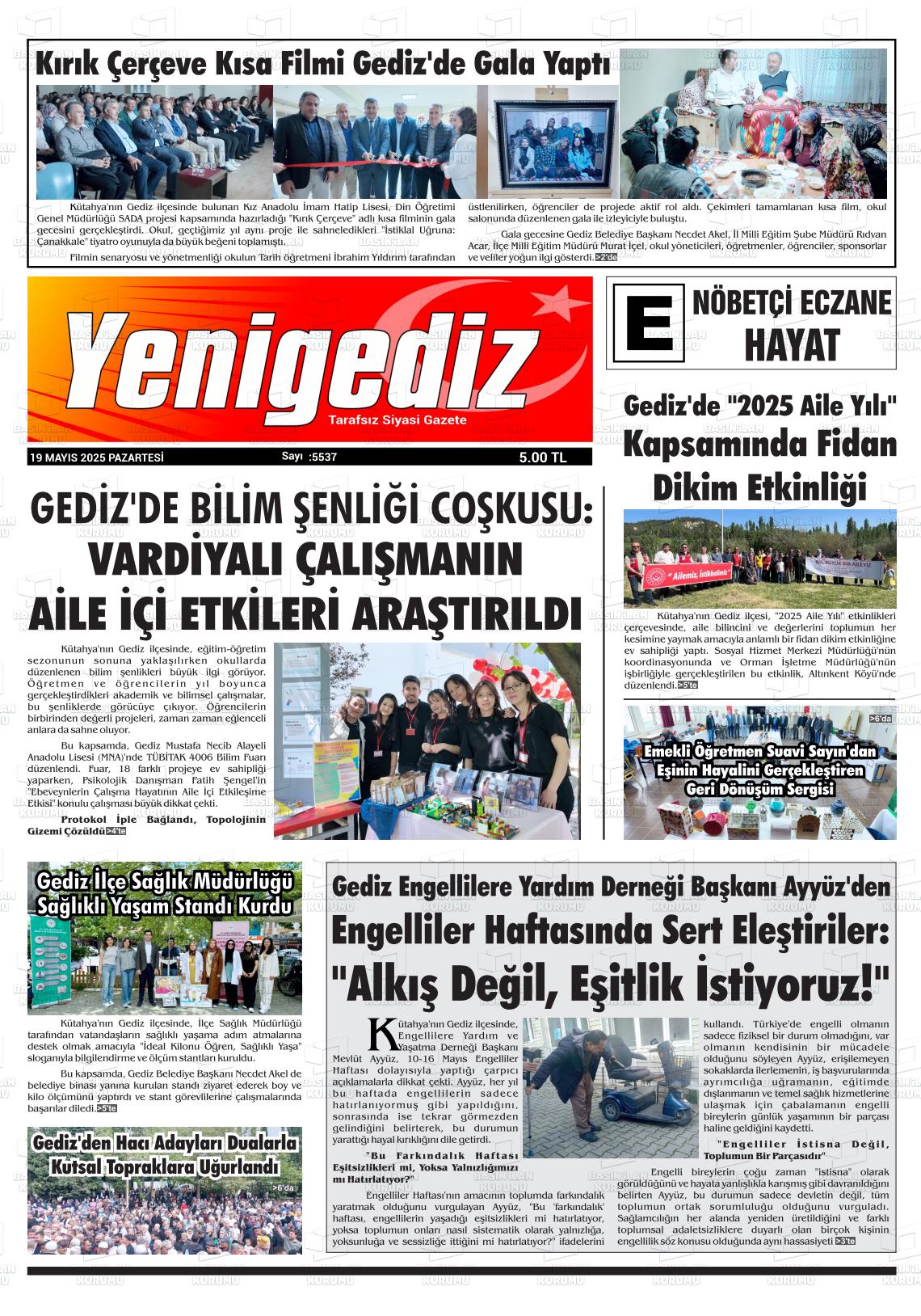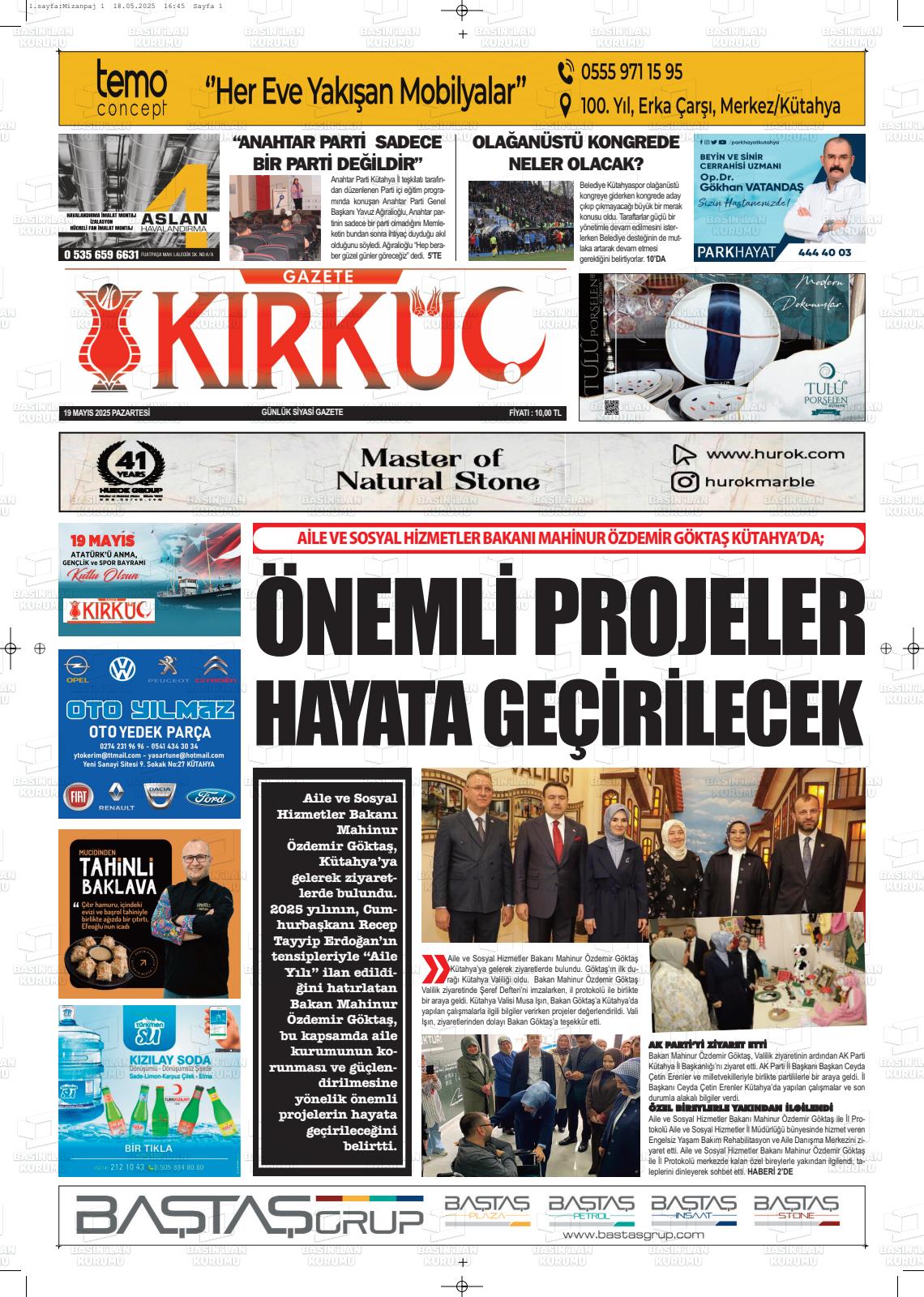 Kütahya Yerel Gazeteleri 01 Şubat 2026, Pazar Günü Manşeti