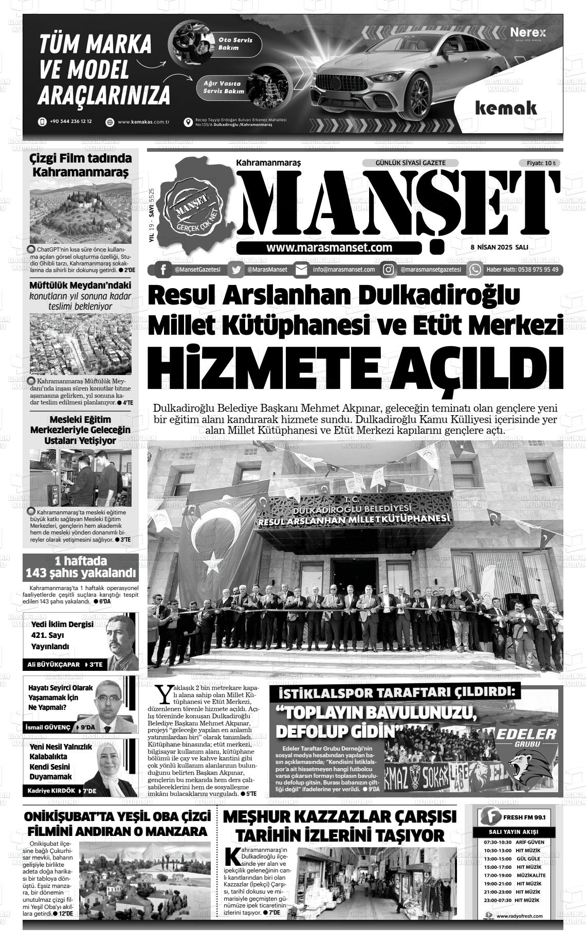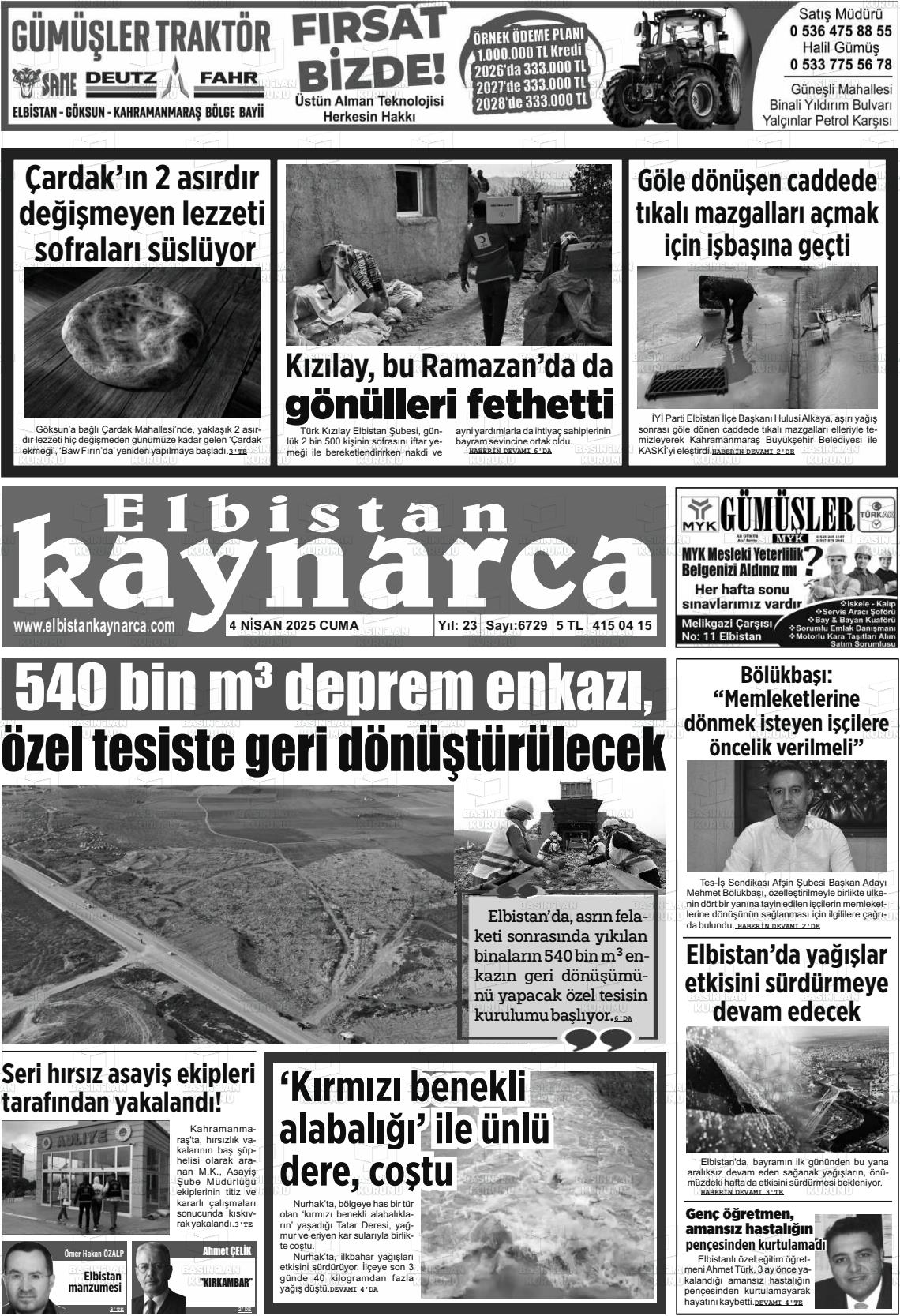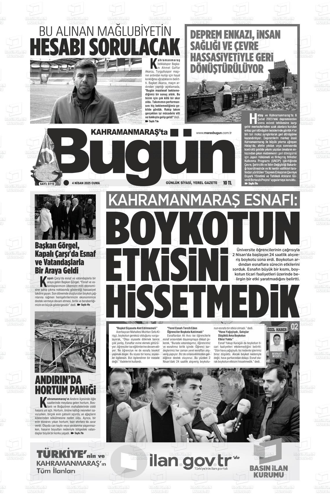 Kahramanmaraş Yerel Gazeteleri 01 Şubat 2026, Pazar Günü Manşeti