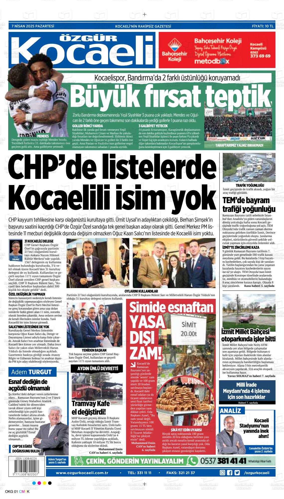 Kocaelİ Yerel Gazeteleri 01 Şubat 2026, Pazar Günü Manşeti
