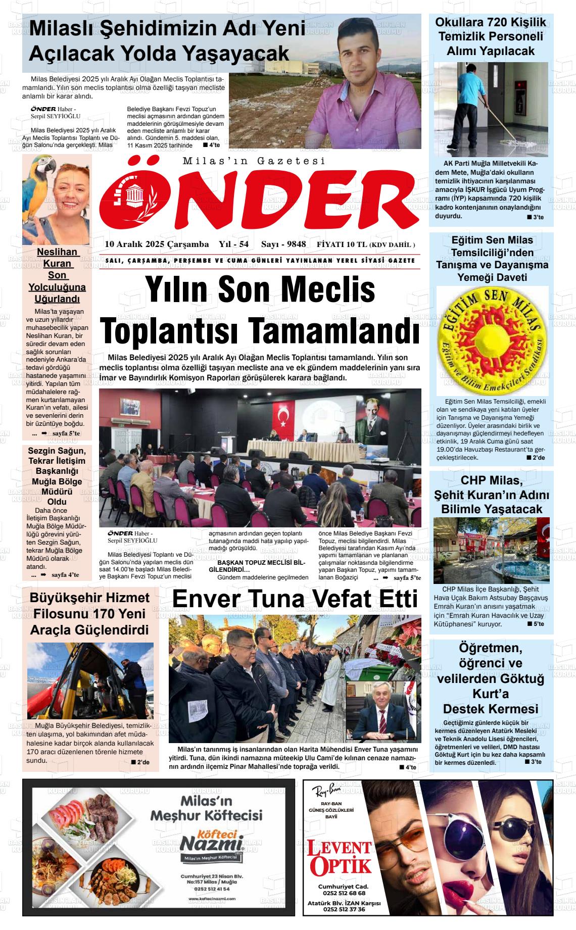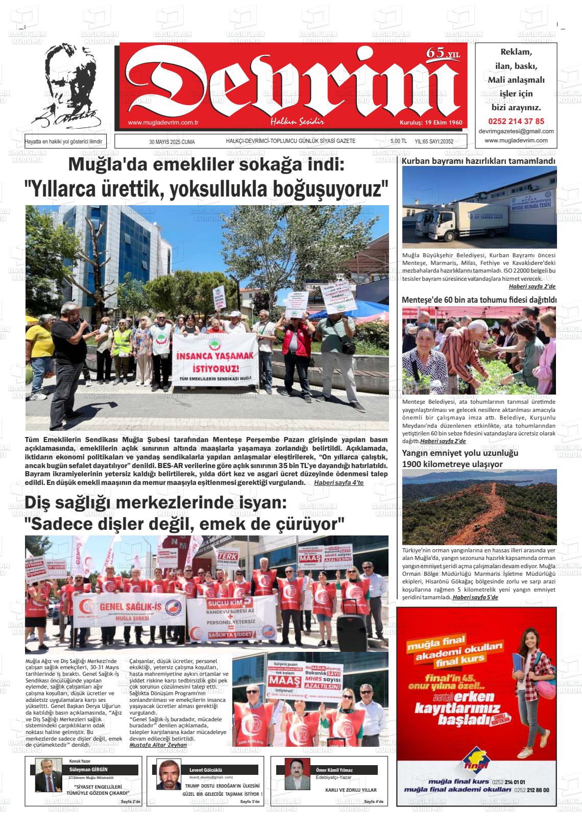 Muğla Yerel Gazeteleri 01 Şubat 2026, Pazar Günü Manşeti