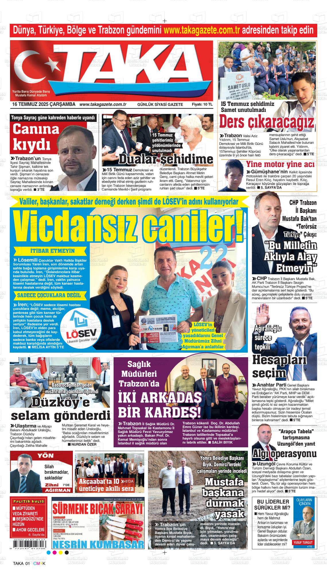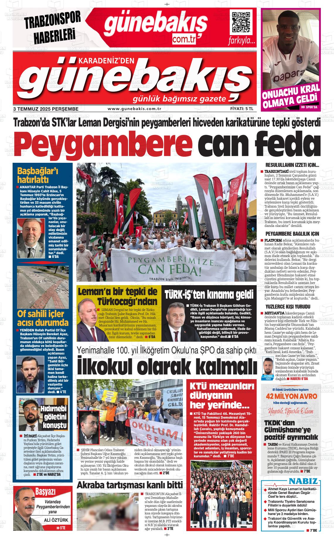 Trabzon Yerel Gazeteleri 21 Mart 2026, Cumartesi Günü Manşeti